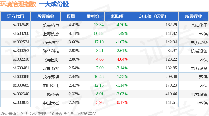资金流向方面,环境治理(399806)指数成份股当日主力资金净流出合计7.76亿元,游资资金净流入合计1.18亿元,散户资金净流入合计6.58亿元。成份股资金流向详情见下表: