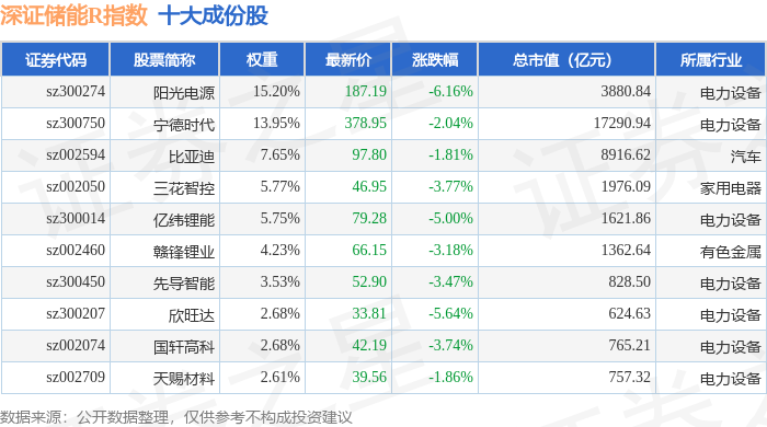 资金流向方面,深证储能R(470036)指数成份股当日主力资金净流出合计117.77亿元,游资资金净流入合计25.55亿元,散户资金净流入合计92.22亿元。成份股资金流向详情见下表: