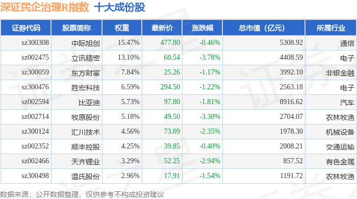 资金流向方面,深证民企治理R(470058)指数成份股当日主力资金净流出合计84.21亿元,游资资金净流入合计25.65亿元,散户资金净流入合计58.56亿元。成份股资金流向详情见下表: