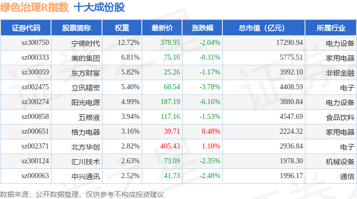 资金流向方面,绿色治理R(480058)指数成份股当日主力资金净流出合计95.42亿元,游资资金净流入合计25.65亿元,散户资金净流入合计69.77亿元。成份股资金流向详情见下表: