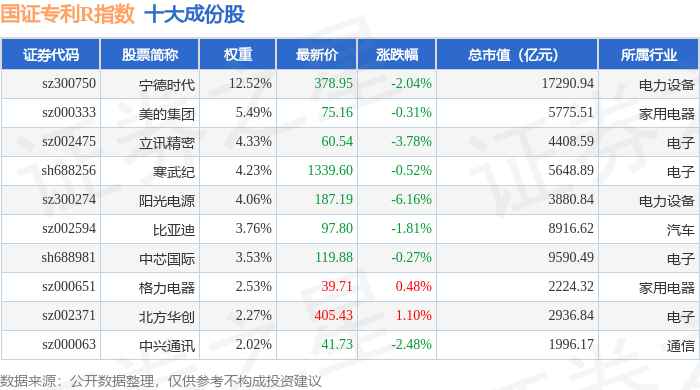 国证专利R(480070)指数十大成份股详情如下:
