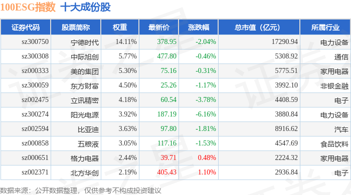 100ESG(970027)指数十大成份股详情如下: