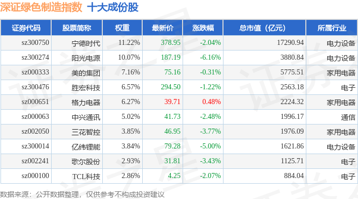 证券之星消息,11月4日,深证绿色制造(970069)指数报收于1897.2点,跌2.17%,成交1142.48亿元,换手率2.3%。当日该指数成份股中,上涨的有10家,万向钱潮以4.18%的涨幅领涨,下跌的有39家,阳光电源以6.16%的跌幅领跌。
