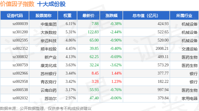 价值因子(980056)指数十大成份股详情如下:
