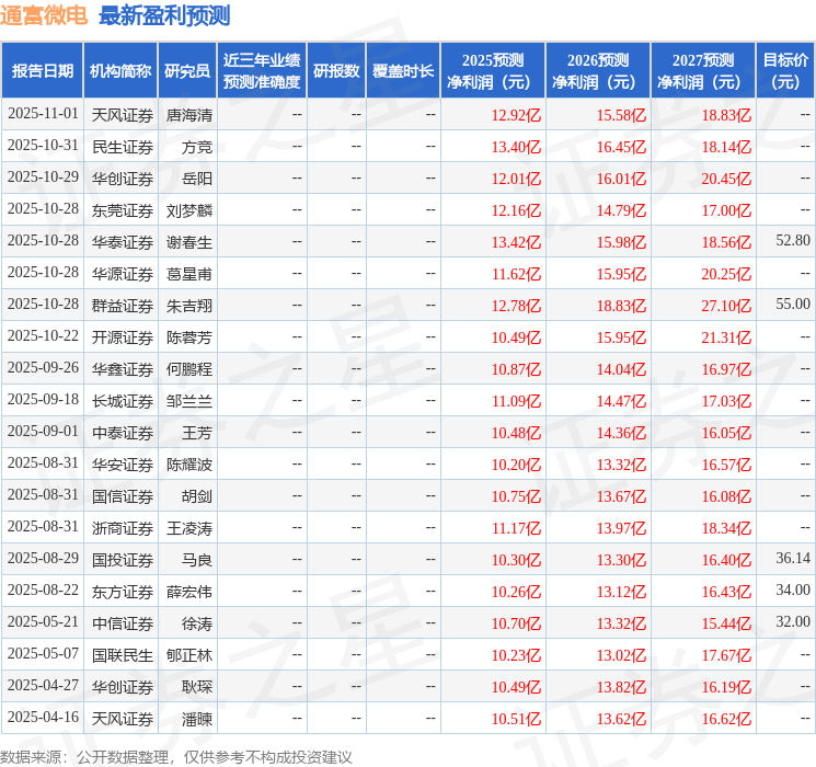 业绩稳健增长,中高端产品营业收入明显增加。2025年前三季度,公司实现营收201.16亿元,同比+17.77%。通富超威苏州和通富超威槟城继续深度融合,优化资源,两家工厂充分结合市场策略,聚焦AI及高算力产品、车载智驾芯片的增量需求,积极扩充产能,拓展新客户资源,成功导入多家新客户。2025年前三季度,公司实现归母净利润8.60亿元,同比+55.74%,主要系营收上升,特别是中高端产品营业收入明显增加。同时,得益于加强管理及成本费用的管控,公司整体效益显著提升。展望后续,在技术驱动的新一轮上行周期与应用市场逐步复苏的叠加影响下,整体封测市场发展向好。未来,5G、AIoT、智能汽车等新兴应用的普及对封装技术提出更高要求。中国封测企业需要在高密度集成、低功耗设计、高散热性能等关键技术领域持续突破,同时加强与国际先进企业的合作交流,共同推动封装技术的创新发展。在政策支持、市场需求和技术进步的多重驱动下,中国IC封测行业有望实现从"跟跑"到"并跑"乃至"领跑"的历史性跨越。