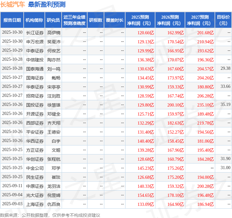 最新盈利预测明细如下: