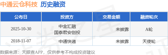 证券之星消息,根据天眼查APP于10月30日公布的信息整理,中通云仓科技有限公司A轮融资,融资额未披露,参与投资的机构包括中金汇融,国泰君安创投。