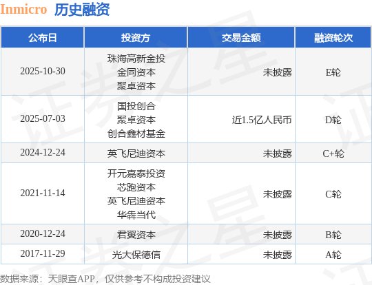 证券之星消息,根据天眼查APP于10月30日公布的信息整理,英麦科(厦门)微电子科技有限公司E轮融资,融资额未披露,参与投资的机构包括珠海高新金投,金同资本,聚卓资本。
