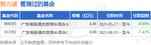 樊力谨先生:经济学硕士,持有中国证券投资基金业从业证书。曾在北京鸿道投资管理有限责任公司先后任研究员、投资经理,2018年6月加入广发基金管理有限公司,历任研究发展部研究员、研究发展部总经理助理、国际业务部任投资经理。2021年5月17日起担任广发港股通优质增长混合型证券投资基金基金经理。
