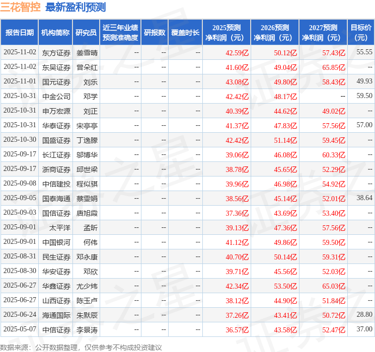 最新盈利预测明细如下: