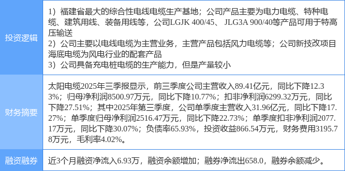 证券之星消息,太阳电缆11月5日涨停收盘,收盘价7.24元。该股于10点6分涨停,未打开涨停,截止收盘封单资金为1.09亿元,占其流通市值2.09%。