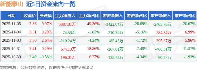 证券之星消息,新能泰山11月5日涨停收盘,收盘价3.86元。该股于9点36分涨停,未打开涨停,截止收盘封单资金为6322.23万元,占其流通市值1.3%。