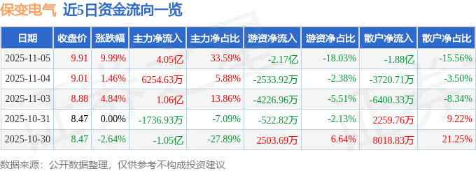 11月5日的资金流向数据方面,主力资金净流入4.05亿元,占总成交额33.59%,游资资金净流出2.17亿元,占总成交额18.03%,散户资金净流出1.88亿元,占总成交额15.56%。