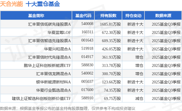 根据2025基金Q3季报公募基金重仓股数据,重仓该股的公募基金共20家,其中持有数量最多的公募基金为汇丰晋信基金的汇丰晋信低碳先锋股票A。汇丰晋信低碳先锋股票A目前规模为36.77亿元,最新净值2.9972(11月4日),较上一交易日下跌2.56%,近一年上涨20.93%。该公募基金现任基金经理为陆彬。陆彬在任的基金产品包括:汇丰晋信智造先锋股票A,管理时间为2019年5月18日至今,期间收益率为229.0%;汇丰晋信动态策略混合A,管理时间为2020年5月9日至今,期间收益率为108.67%;汇丰晋信核心成长A,管理时间为2021年5月24日至今,期间收益率为4.22%。