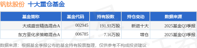 根据2025基金Q3季报公募基金重仓股数据,重仓该股的公募基金共2家,其中持有数量最多的公募基金为大成基金的大成盛世精选混合A。大成盛世精选混合A目前规模为1.06亿元,最新净值2.416(11月4日),较上一交易日下跌1.87%,近一年上涨20.8%。该公募基金现任基金经理为赵蓬。赵蓬在任的基金产品包括:大成蓝筹稳健混合A,管理时间为2023年8月4日至今,期间收益率为16.21%;