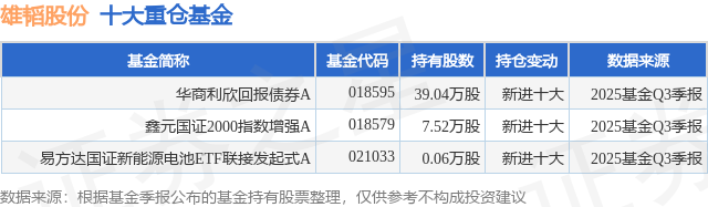 根据2025基金Q3季报公募基金重仓股数据,重仓该股的公募基金共3家,其中持有数量最多的公募基金为华商基金的华商利欣回报债券A。华商利欣回报债券A目前规模为6.21亿元,最新净值1.158(11月4日),较上一交易日下跌0.3%,近一年上涨9.83%。该公募基金现任基金经理为厉骞。厉骞在任的基金产品包括:华商丰利增强定开债A,管理时间为2019年12月25日至今,期间收益率为183.19%;华商信用增强债券A,管理时间为2020年7月16日至今,期间收益率为95.41%;华商创新成长混合发起式A,管理时间为2025年1月6日至今,期间收益率为66.83%。