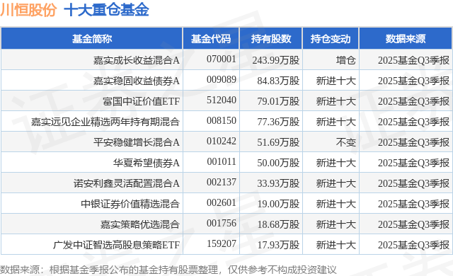 根据2025基金Q3季报公募基金重仓股数据,重仓该股的公募基金共22家,其中持有数量最多的公募基金为嘉实基金的嘉实成长收益混合A。嘉实成长收益混合A目前规模为17.86亿元,最新净值1.3494(11月4日),较上一交易日下跌1.21%,近一年上涨18.18%。该公募基金现任基金经理为方晗。方晗在任的基金产品包括:嘉实对冲套利定期混合A,管理时间为2021年4月9日至今,期间收益率为-14.81%;嘉实策略视野三年持有期混合,管理时间为2021年12月28日至今,期间收益率为-23.27%;