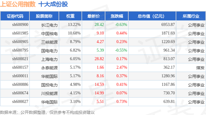 上证公用(000041)指数十大成份股详情如下: