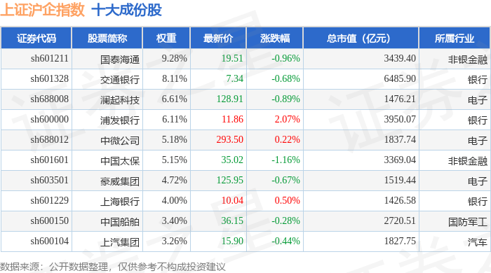 上证沪企(000062)指数十大成份股详情如下: