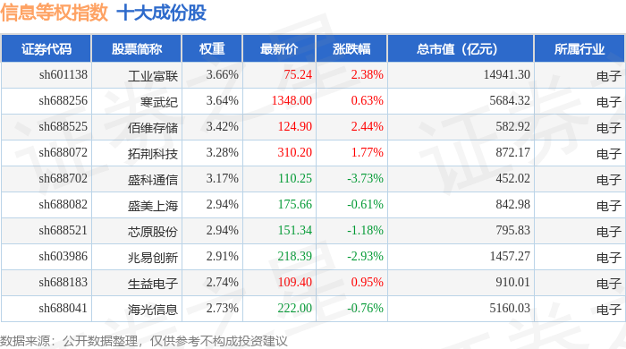 证券之星消息,11月5日,信息等权(000077)指数报收于6064.35点,跌0.5%,成交959.43亿元,换手率1.75%。当日该指数成份股中,上涨的有14家,法拉电子以3.11%的涨幅领涨,下跌的有36家,传音控股以4.68%的跌幅领跌。