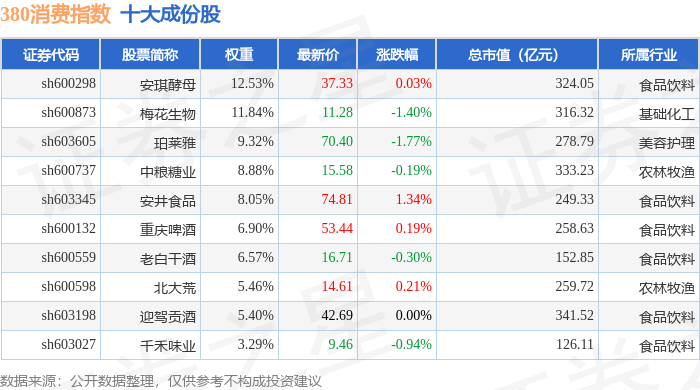 380消费(000108)指数十大成份股详情如下: