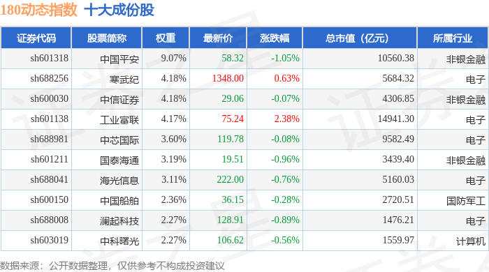180动态(000123)指数十大成份股详情如下: