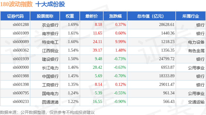 180波动(000129)指数十大成份股详情如下: