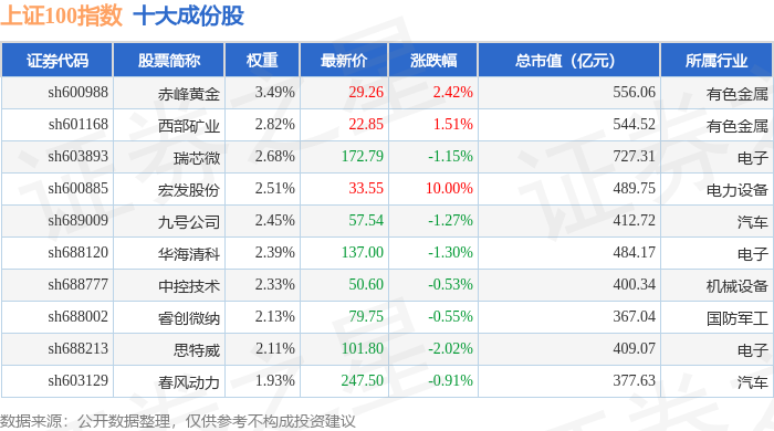 证券之星消息,11月5日,上证100(000132)指数报收于5925.87点,涨0.94%,成交433.5亿元,换手率1.62%。当日该指数成份股中,上涨的有52家,金盘科技以18.12%的涨幅领涨,下跌的有46家,长白山以9.07%的跌幅领跌。