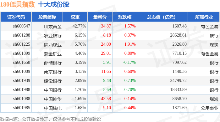 180低贝(000136)指数十大成份股详情如下: