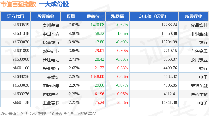 证券之星消息,11月5日,市值百强(000155)指数报收于3294.23点,跌0.1%,成交2032.29亿元,换手率0.4%。当日该指数成份股中,上涨的有36家,特变电工以9.99%的涨幅领涨,下跌的有62家,赛力斯以5.56%的跌幅领跌。