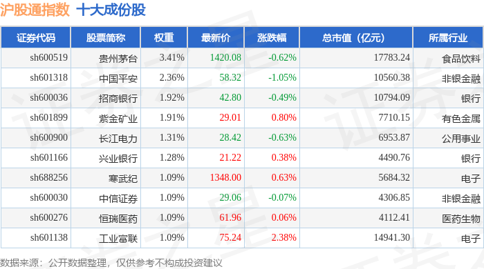沪股通(000159)指数十大成份股详情如下: