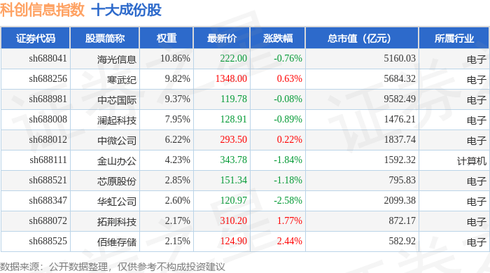 科创信息(000682)指数十大成份股详情如下: