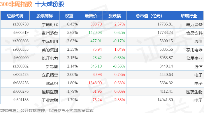 300非周(000969)指数十大成份股详情如下: