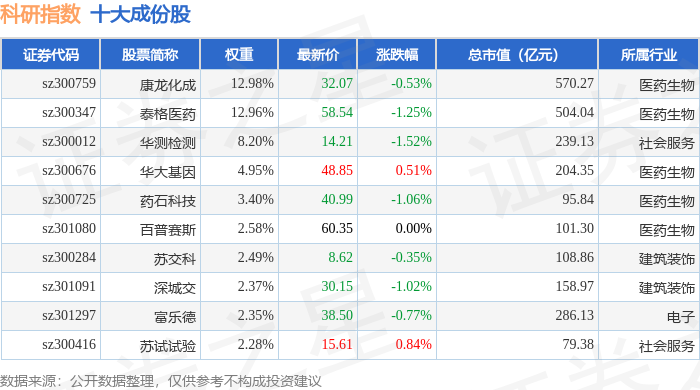 科研指数(399243)十大成份股详情如下: