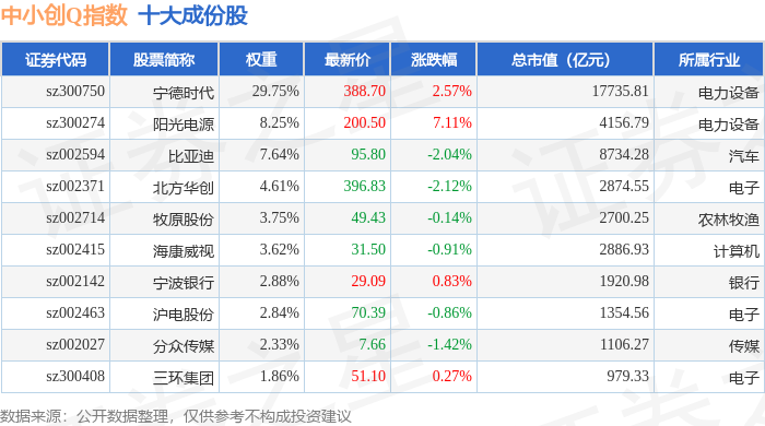 证券之星消息,11月5日,中小创Q(399294)指数报收于3657.24点,涨1.16%,成交835.22亿元,换手率1.17%。当日该指数成份股中,上涨的有26家,阳光电源以7.11%的涨幅领涨,下跌的有24家,完美世界以6.01%的跌幅领跌。