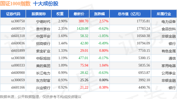 证券之星消息,11月5日,国证1000(399311)指数报收于4908.7点,涨0.21%,成交8862.46亿元,换手率0.98%。当日该指数成份股中,上涨的有510家,阿特斯以20.02%的涨幅领涨,下跌的有456家,光弘科技以7.95%的跌幅领跌。