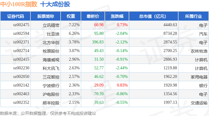 中小100R(399333)指数十大成份股详情如下: