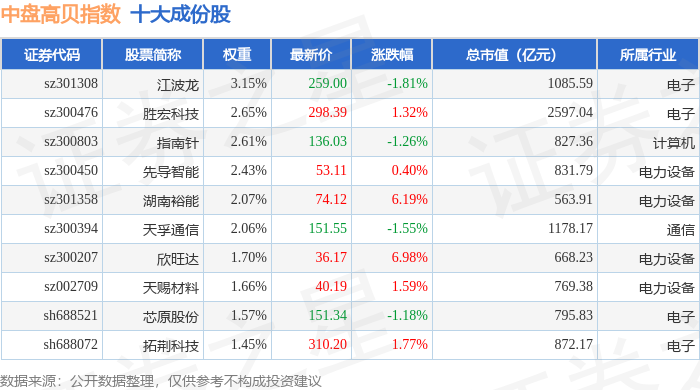 证券之星消息,11月5日,中盘高贝(399407)指数报收于3092.37点,涨0.18%,成交1318.93亿元,换手率2.25%。当日该指数成份股中,上涨的有34家,阿特斯以20.02%的涨幅领涨,下跌的有65家,深信服以4.54%的跌幅领跌。