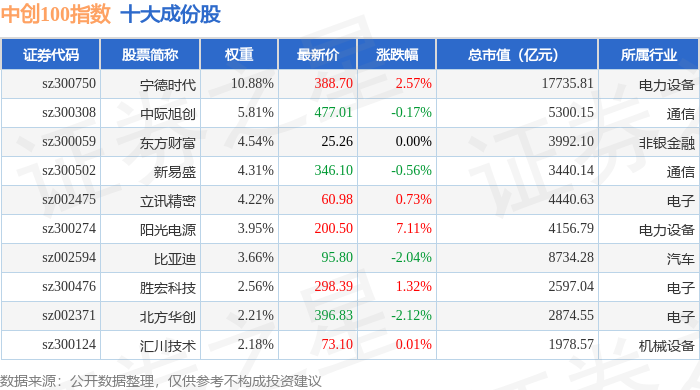 资金流向方面,中创100(399612)指数成份股当日主力资金净流入合计795.37万元,游资资金净流出合计3.73亿元,散户资金净流入合计3.65亿元。成份股资金流向详情见下表: