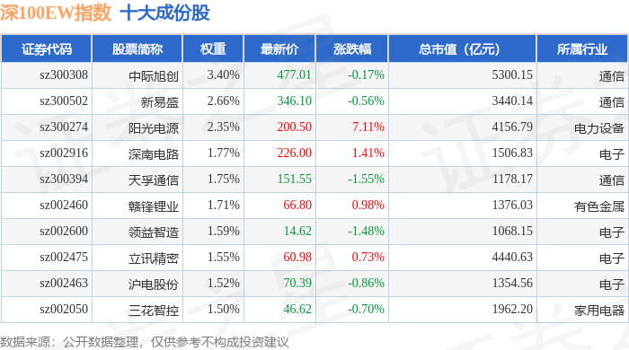 深100EW(399632)指数十大成份股详情如下: