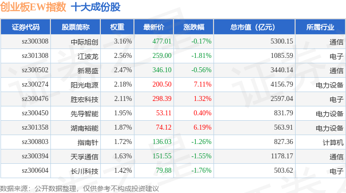 资金流向方面,创业板EW(399635)指数成份股当日主力资金净流出合计1.21亿元,游资资金净流入合计1.61亿元,散户资金净流出合计4063.11万元。成份股资金流向详情见下表: