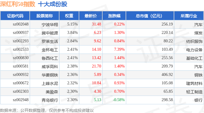 深红利50(399672)指数十大成份股详情如下: