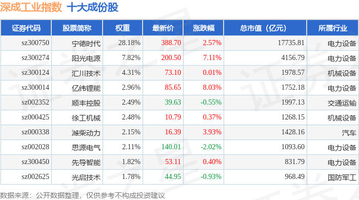 证券之星消息,11月5日,深成工业(399682)指数报收于1922.36点,涨2.14%,成交1378.02亿元,换手率2.47%。当日该指数成份股中,上涨的有69家,东方日升以11.15%的涨幅领涨,下跌的有39家,英维克以3.16%的跌幅领跌。