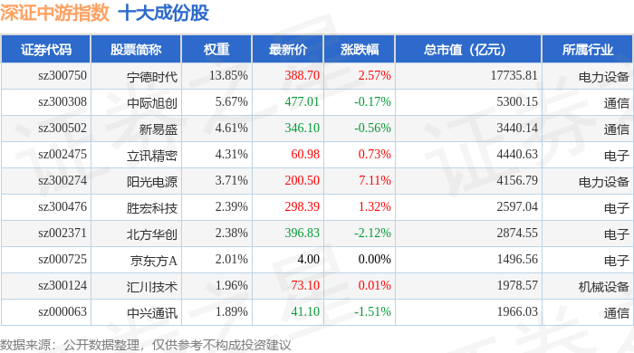 深证中游(399705)指数十大成份股详情如下: