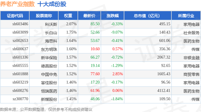 资金流向方面,养老产业(399812)指数成份股当日主力资金净流出合计2.36亿元,游资资金净流出合计4809.89万元,散户资金净流入合计2.84亿元。成份股资金流向详情见下表: