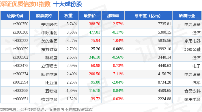 深证优质信披R(470065)指数十大成份股详情如下: