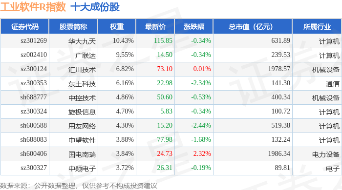 工业软件R(480034)指数十大成份股详情如下: