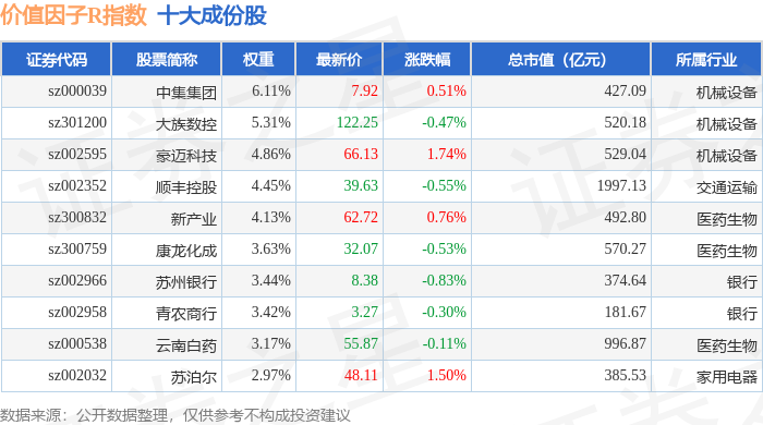 资金流向方面,价值因子R(480056)指数成份股当日主力资金净流入合计19.8亿元,游资资金净流出合计2.64亿元,散户资金净流出合计17.17亿元。成份股资金流向详情见下表: