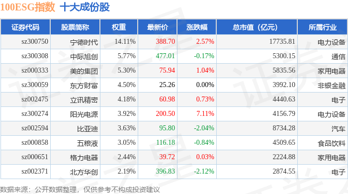 资金流向方面,100ESG(970027)指数成份股当日主力资金净流出合计5.05亿元,游资资金净流出合计4.01亿元,散户资金净流入合计9.06亿元。成份股资金流向详情见下表: