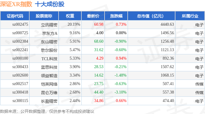 证券之星消息,11月5日,深证XR(970046)指数报收于2215.5点,跌0.36%,成交467.95亿元,换手率2.06%。当日该指数成份股中,上涨的有17家,欧菲光以1.93%的涨幅领涨,下跌的有32家,完美世界以6.01%的跌幅领跌。